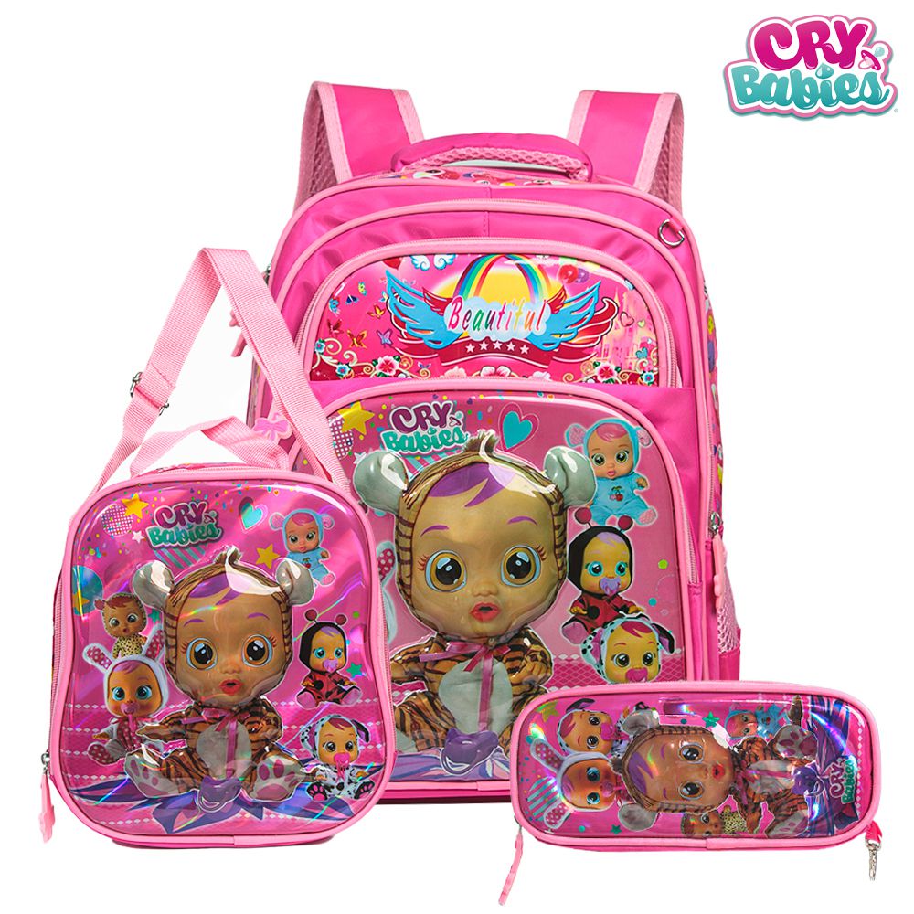 Kit Mochila Escolar Infantil Cry Babies Costas, acompanha lancheira e estojo. Possui alça de mão reforçada. Agora você pode levar sua mochila no seu dia a dia ou acompanhar você na escola. Sua abertura maior se dá por zíper com puxador. Na parte de dentro possui amplo espaço para a guardar diversos materiais como cadernos, livros e estojos. Na parte da frente, possui bolso com zíper para a guardar pertences de menor tamanho e bolsos laterais.