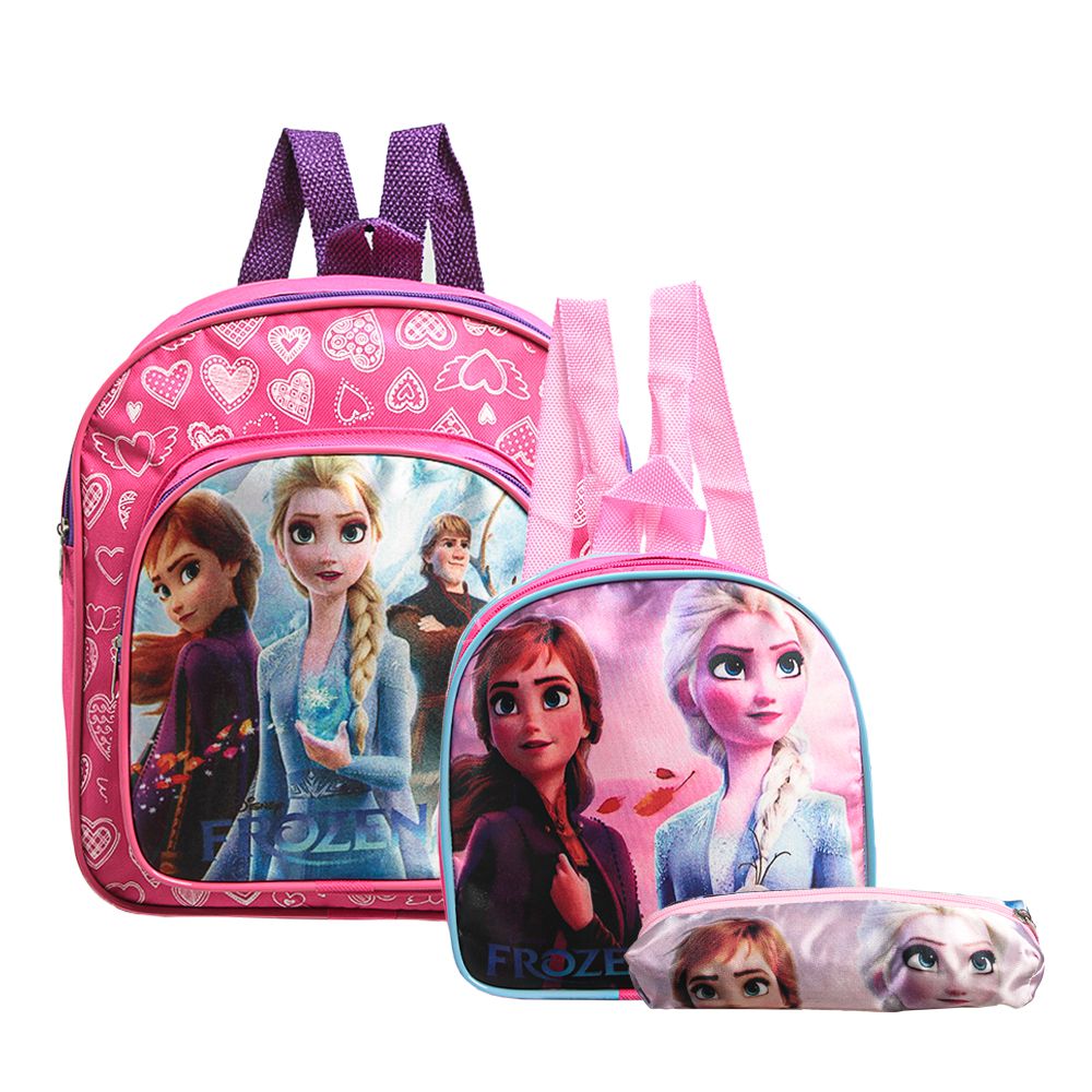 Mochila Escolar Frozen 2 Anna e Elsa Costas Lancheira+Estojo