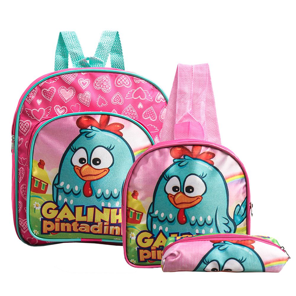 Mochila Escolar Galinha Pintadinha Costas Kit Lancheira+Esto