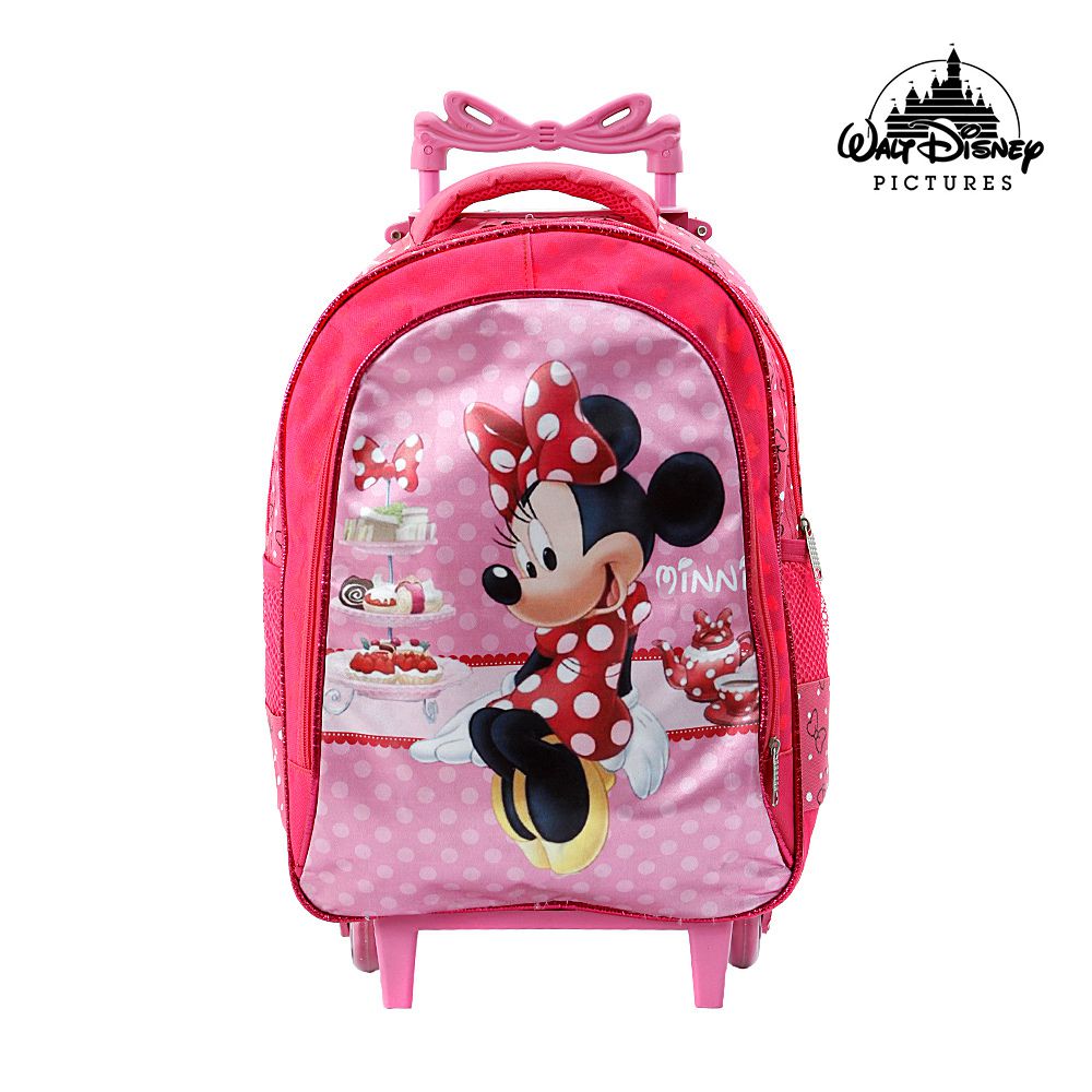 Mochila Escolar Minnie Mouse De Rodinha. Agora você pode levar sua mochila Da Minnie Mouse no seu dia a dia ou acompanhar você na escola. Possui alça de mão reforçada. Sua abertura maior se dá por zíper com puxador. Na parte de dentro possui amplo espaço para a guardar diversos materiais como cadernos, livros e estojos. Na parte da frente, possui bolso com zíper para a guardar pertences de menor tamanho, e bolsos laterais.