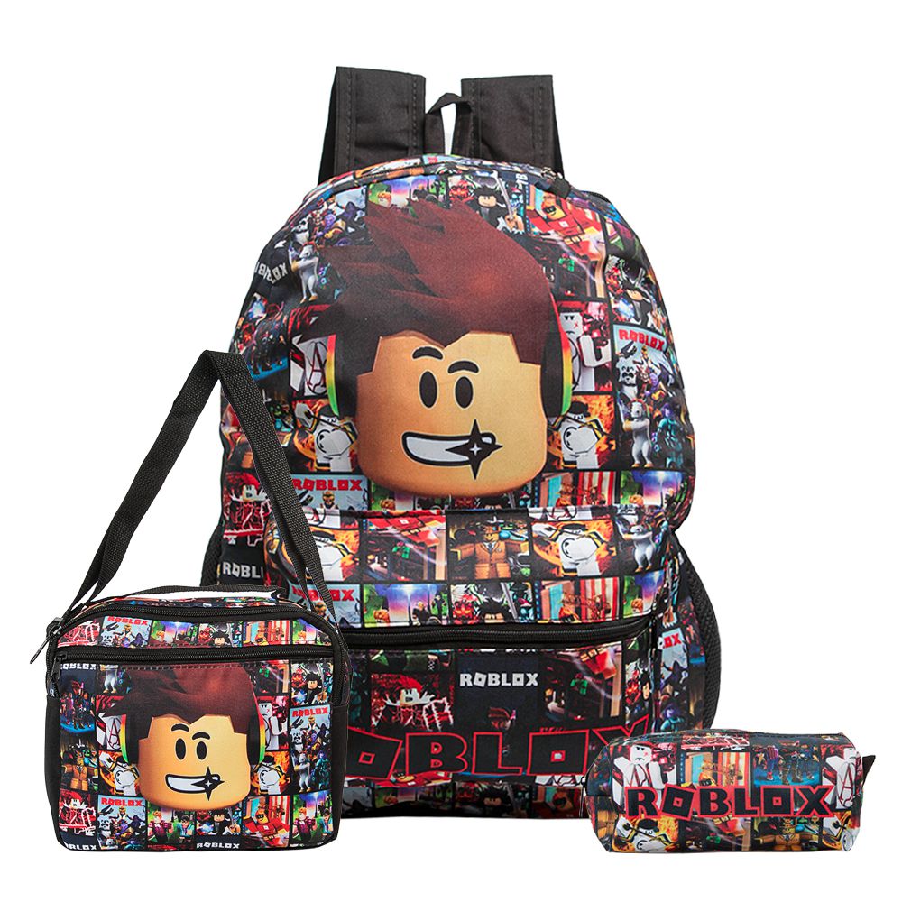 Kit Mochila Escolar Infantil Roblox acompanha lancheira e estojo. Possui alça de mão reforçada. Agora você pode levar sua mochila no seu dia a dia ou acompanhar você na escola. Sua abertura maior se dá por zíper com puxador. Na parte de dentro possui amplo espaço para a guardar diversos materiais como cadernos, livros e estojos. Na parte da frente, possui bolso com zíper para a guardar pertences de menor tamanho.