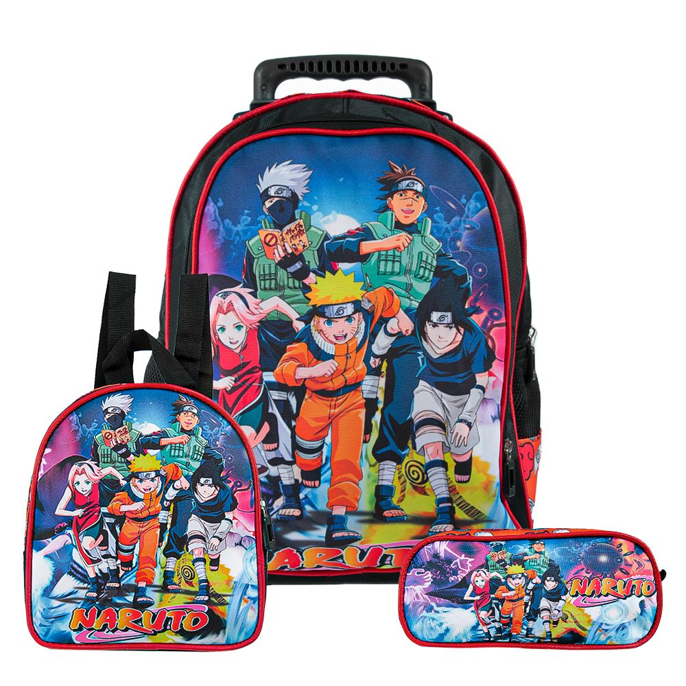 Kit Mochila Escolar Infantil Naruto Rodinhas, acompanha lancheira e estojo. Agora pode levar sua mochila no seu dia a dia ou acompanhar você na escola. Possui alça de mão reforçada. Sua abertura maior se dá por zíper com puxador. Na parte de dentro possui amplo espaço para a guardar diversos materiais como cadernos, livros e estojos. Na parte da frente, possui bolso com zíper para a guardar pertences de menor tamanho, e bolsos laterais.