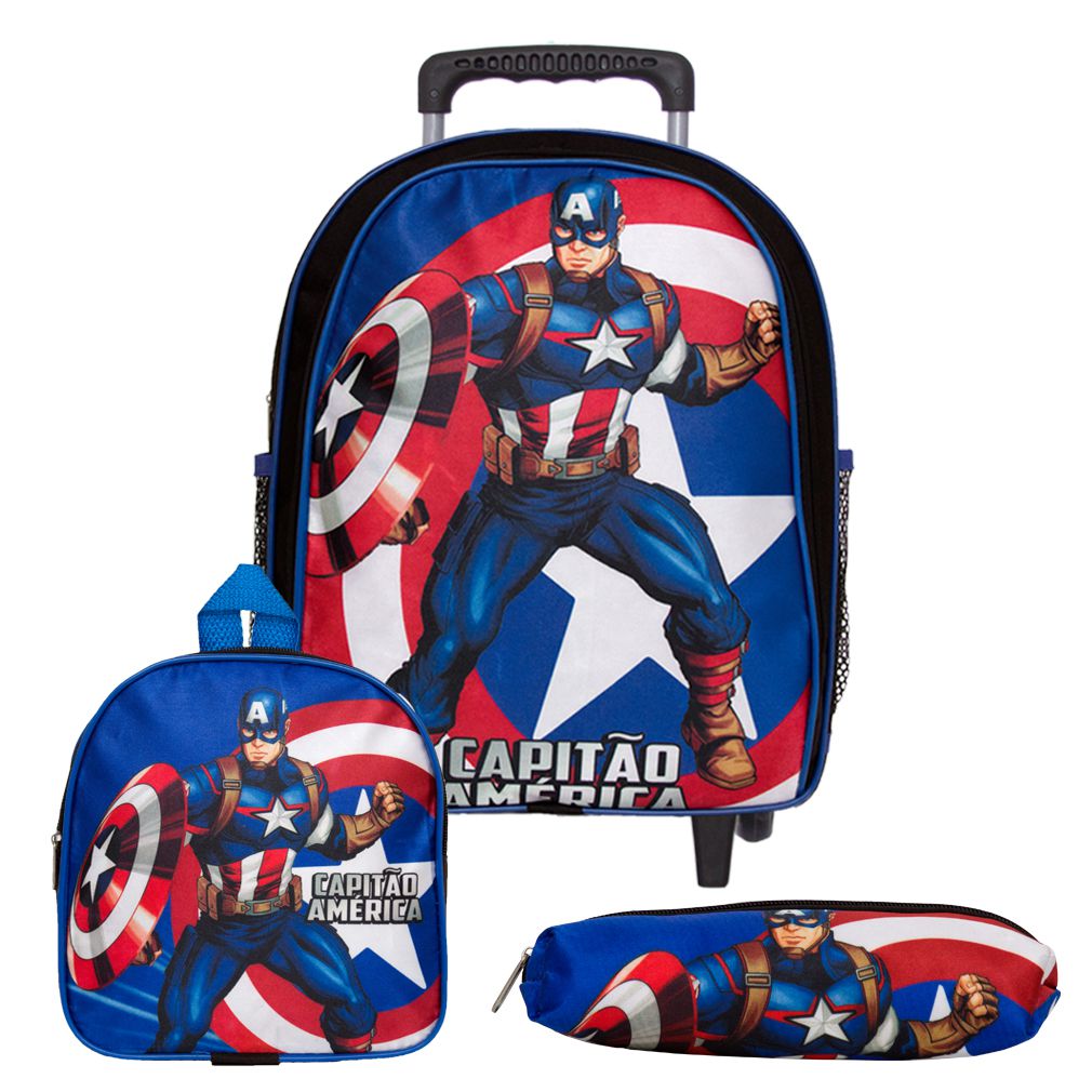 Tags: Mochila, Escola, Escolar, Capitão América, Infantil, Rodinhas, Passeio, Estojo, Lancheira, Bolsa, Menino, Juvenil, Reforçada, Desenho.
