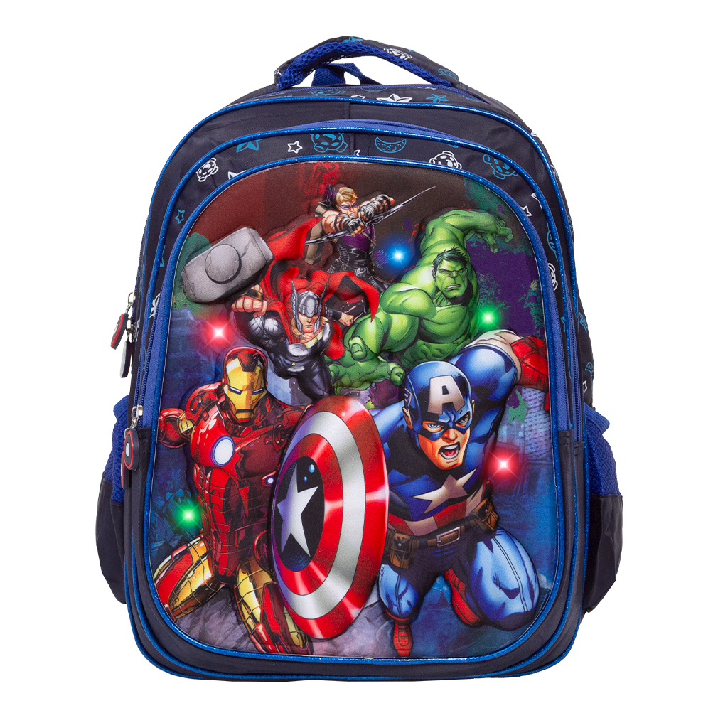 Mochila Infantil Escolar Com Rodinhas Avengers. Super-heróis que serão capazes de defender a Terra de ameaças sem precedentes, Homem de Ferro, Capitão América, Hulk, Thor, Viúva Negra e Gavião Arqueiro formam o time dos sonhos.