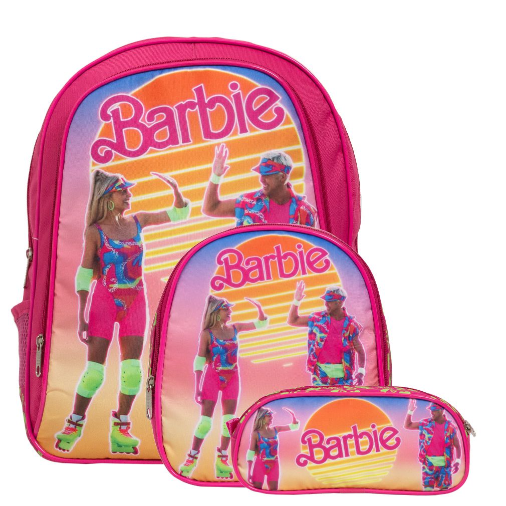Kit Mochila Escolar Infantil Barbie, acompanha lancheira e estojo. Possui alça de mão reforçada. Agora você pode levar sua mochila no seu dia a dia ou acompanhar você na escola. Sua abertura maior se dá por zíper com puxador. Na parte de dentro possui amplo espaço para a guardar diversos materiais como cadernos, livros e estojos. Na parte da frente, possui bolso com zíper para a guardar pertences de menor tamanho e bolsos laterais.
