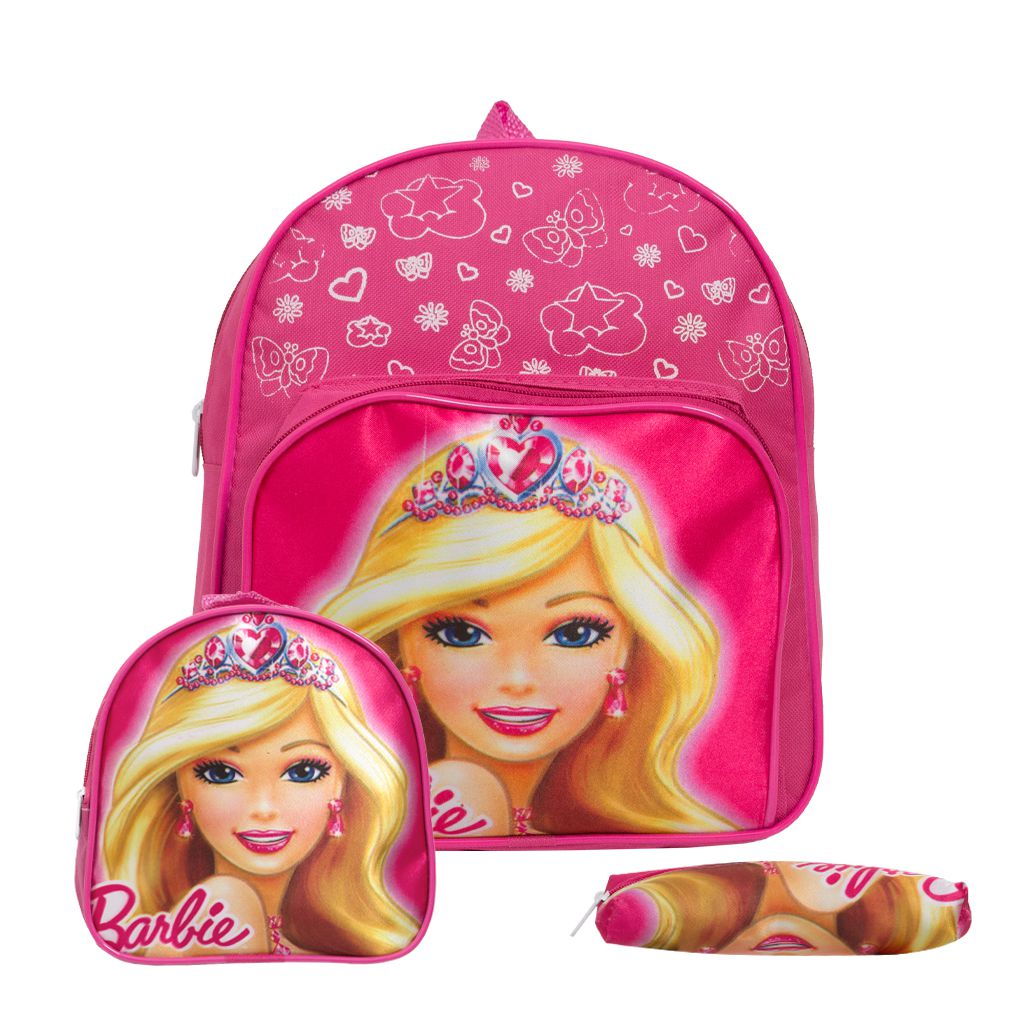 Kit Mochila Escolar Infantil Barbie, acompanha lancheira e estojo. Possui alça de mão reforçada. Agora você pode levar sua mochila no seu dia a dia ou acompanhar você na escola. Sua abertura maior se dá por zíper com puxador. Na parte de dentro possui amplo espaço para a guardar diversos materiais como cadernos, livros e estojos. Na parte da frente, possui bolso com zíper para a guardar pertences de menor tamanho e bolsos laterais.
