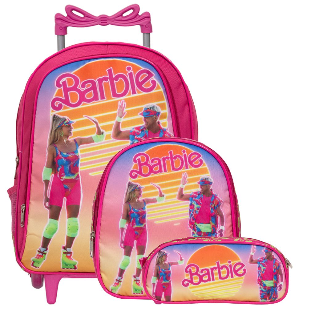 Kit Mochila Escolar Infantil Barbie Rodinhas, acompanha lancheira e estojo. Possui alça de mão reforçada. Agora você pode levar sua mochila no seu dia a dia ou acompanhar você na escola. Sua abertura maior se dá por zíper com puxador. Na parte de dentro possui amplo espaço para a guardar diversos materiais como cadernos, livros e estojos. Na parte da frente, possui bolso com zíper para a guardar pertences de menor tamanho e bolsos laterais.