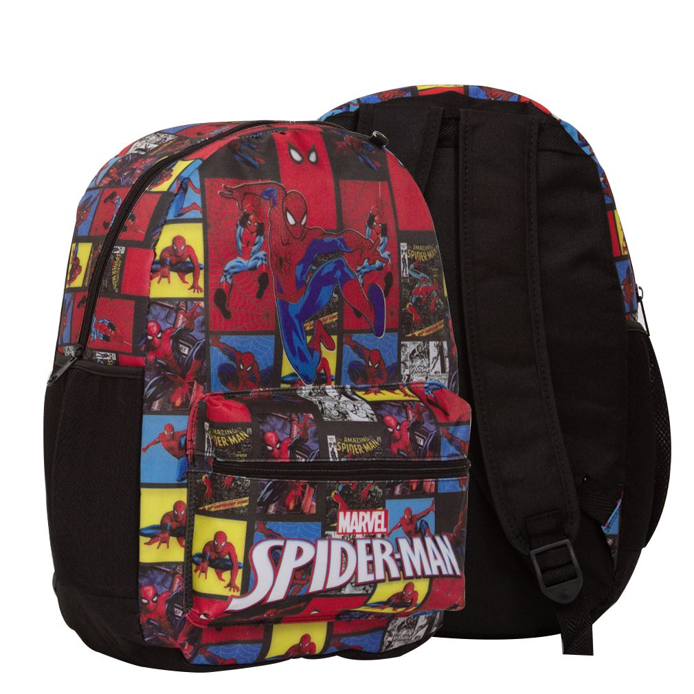 Mochila Escolar Infantil Homem Aranha possui alça de mão reforçada. Agora você pode levar sua mochila no seu dia a dia ou acompanhar você na escola. Sua abertura maior se dá por zíper com puxador. Na parte de dentro possui amplo espaço para a guardar diversos materiais como cadernos, livros e estojos. Na parte da frente, possui bolso com zíper para a guardar pertences de menor tamanho e bolsos laterais.