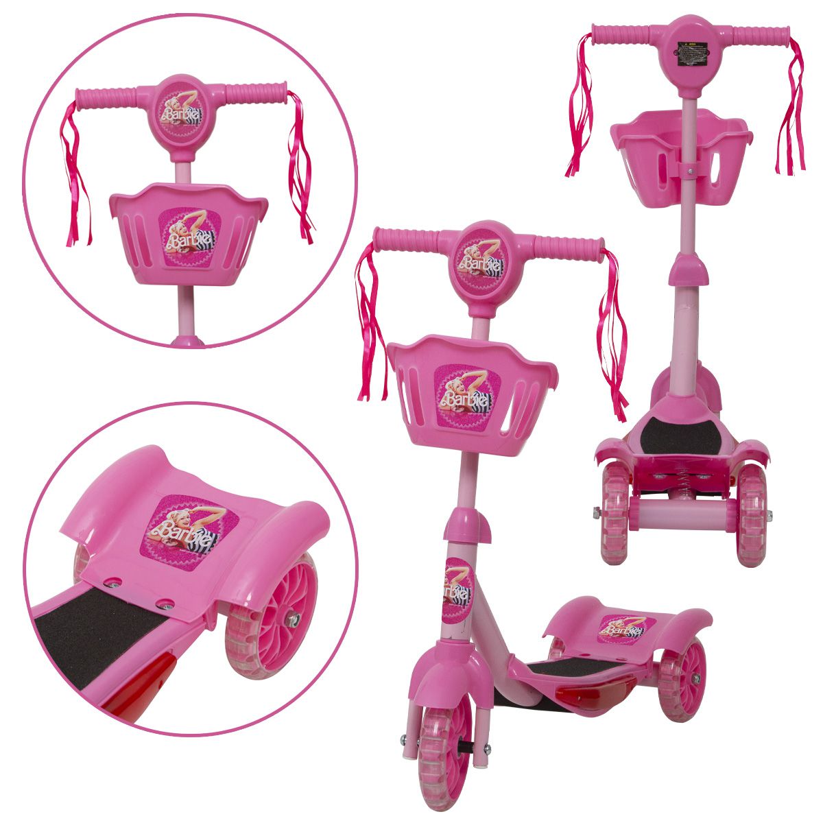 Patinete Infantil 3 Rodas Barbie Com Led Musica Cestinha
