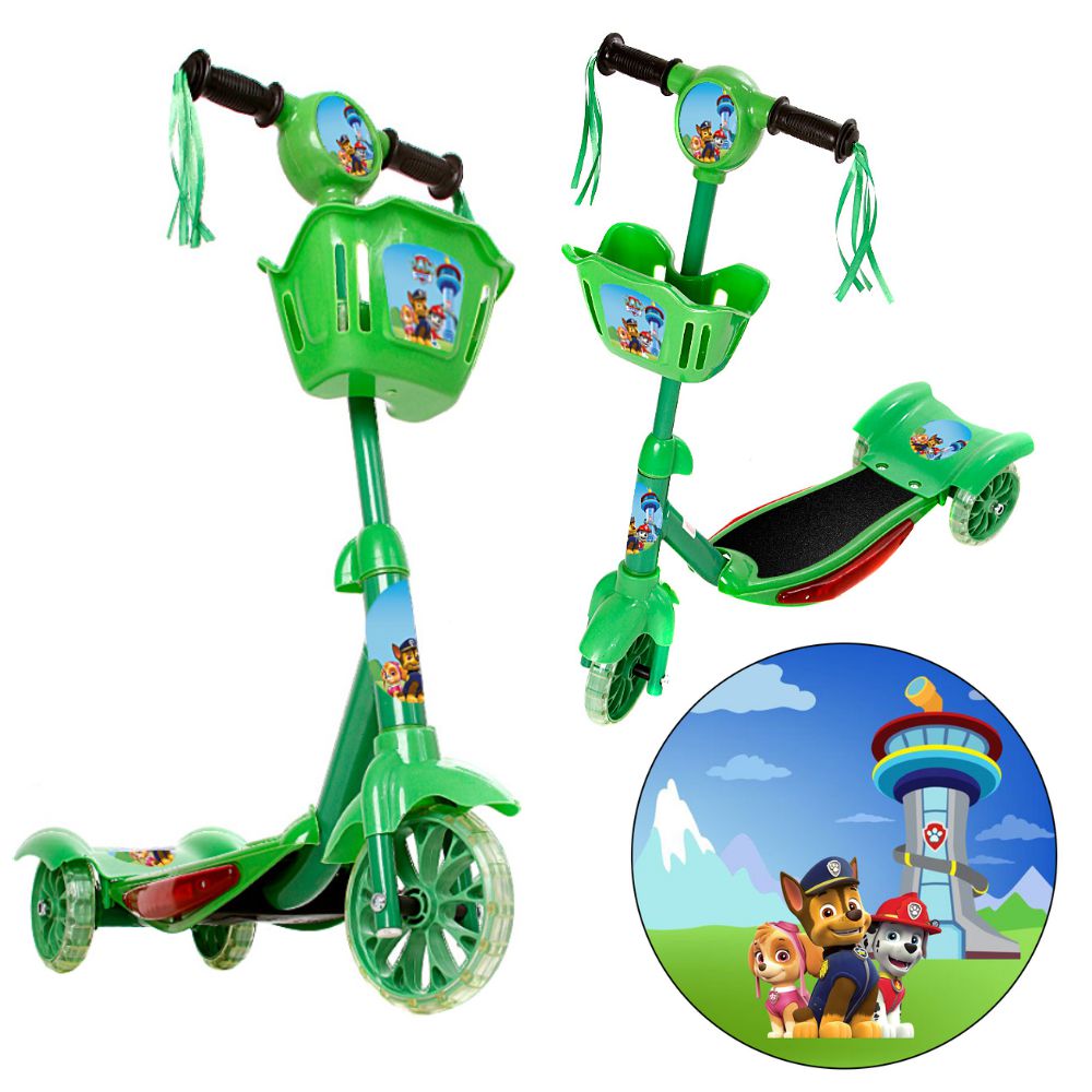 patinete de tres rodas, cestinha, criança, infantil, dm toys, led, feminino, masculino, verde, meninos, brinquedo, meninas.