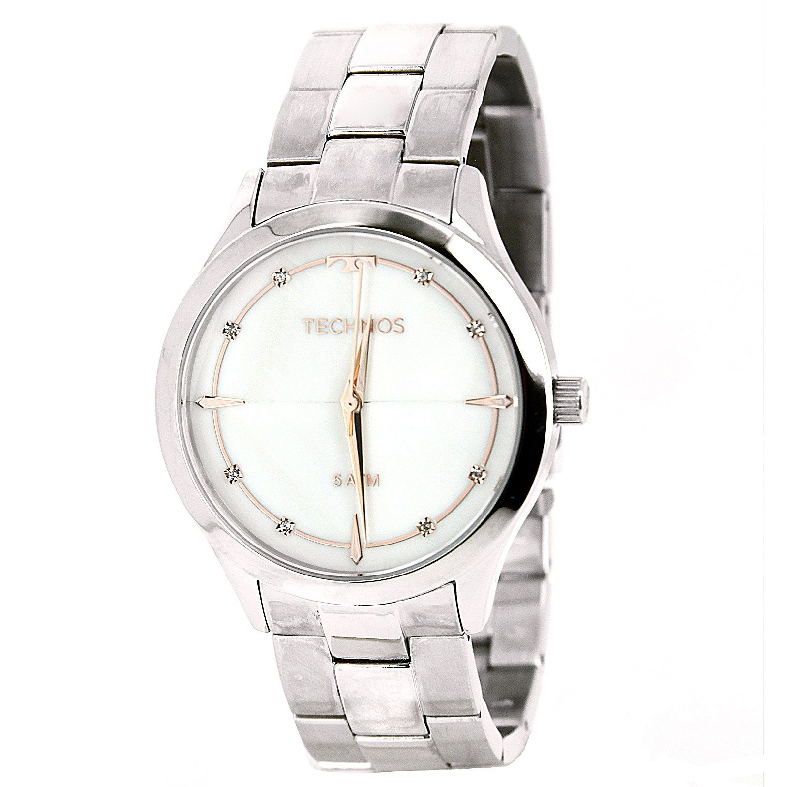 Relógio Technos feminino com caixa de pulseira de aço. O clássico prata para todas as ocasiões em um relógio minimalista e delicado.