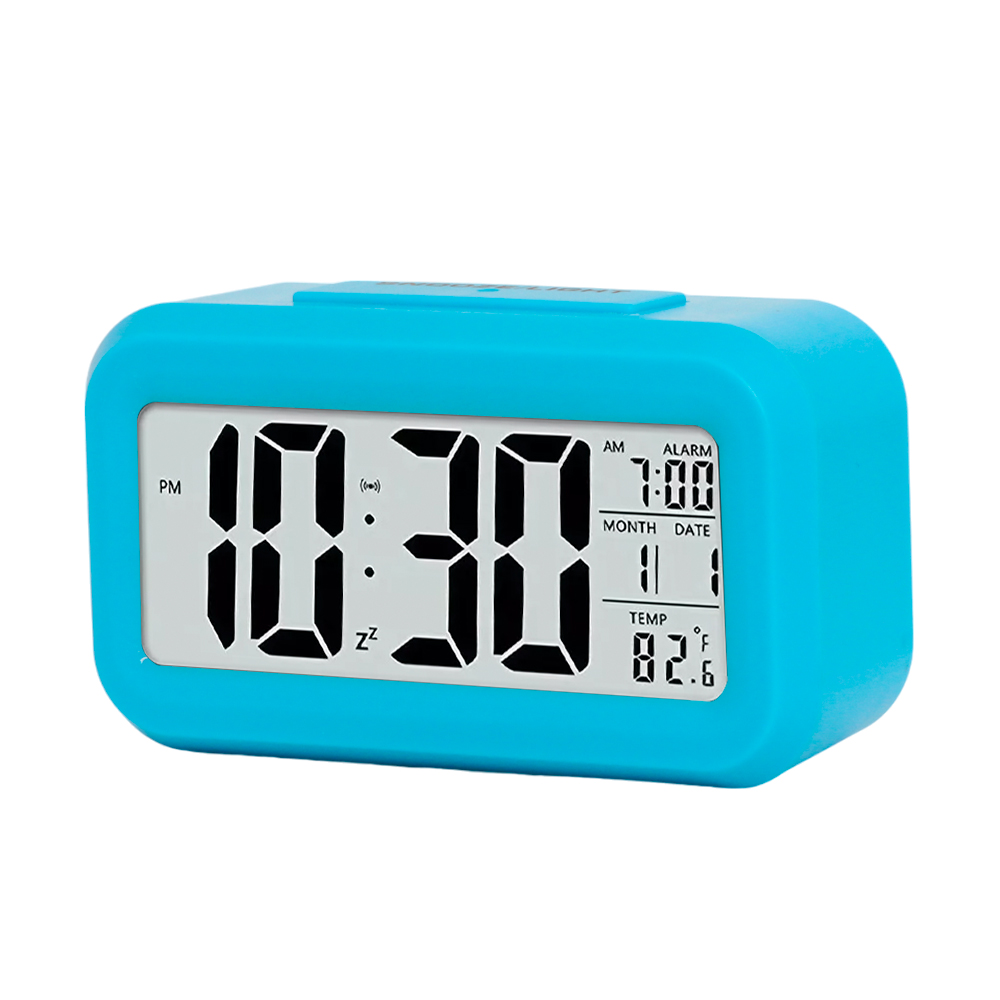 Relógio Digital Despertador Retangular Mesa Cabeceira Azul